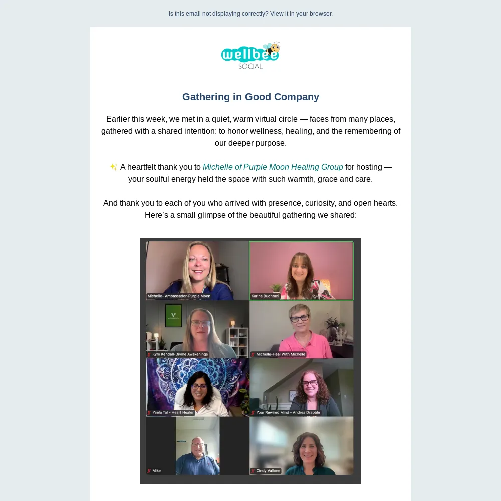Really casual, heart-felt conversations.. human-to-human… we have this space, and welcomed many already. Let’s connect, shall we? Virtual Wellbee Meetup 💛